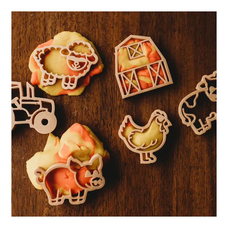 Lascia che le piccole mani esplorino le meraviglie della fattoria con le formine Fattoria di Kinfolk Party, uno strumento progettato con cura, perfetto per il gioco sensoriale della fattoria, e per l'apprendimento basato sulla natura e la narrazione.