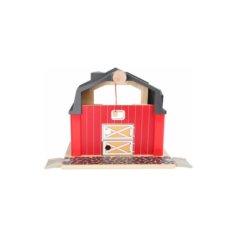 La fattoria World di Small Foot ha al centro della scena il fienile con cancello a due ante battenti, dotato di una gru magnetica funzionante: i piccoli possono sollevare le balle di fieno e caricarle sui rimorchi in tutta facilità, proprio come in una vera fattoria!