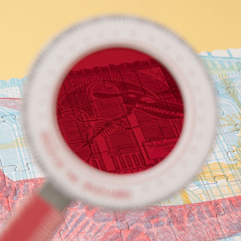 Un puzzle educativo molto originale: con la lente d'ingrandimento rossa viaggerai nel periodo giurassico e con la lente d'ingrandimento blu scoprirai il museo delle scienze naturali!