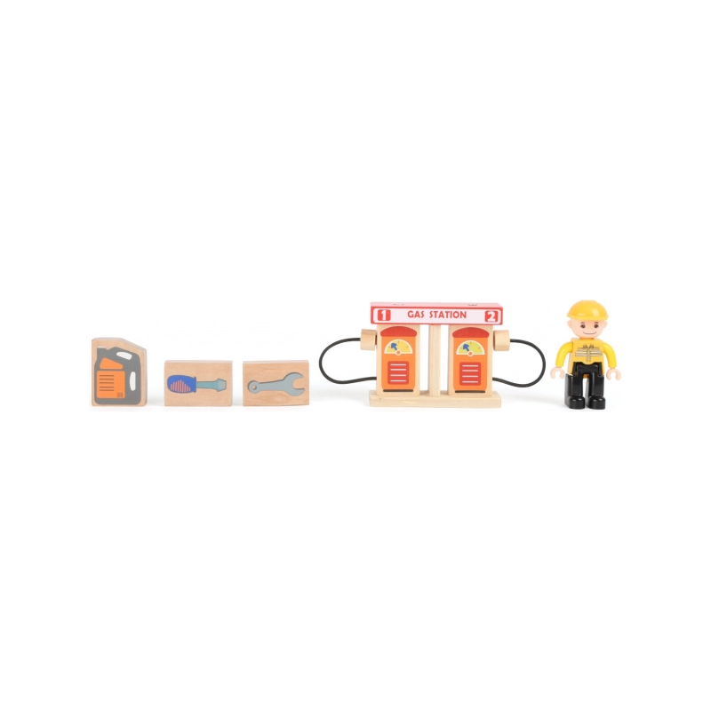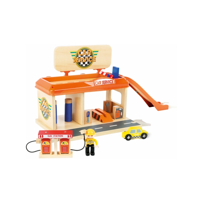 Preparatevi a divertirvi con questa stazione di servizio e autofficina in legno, che offre una grande varietà di opzioni per sviluppare la creatività e le abilità motorie dei bambini!